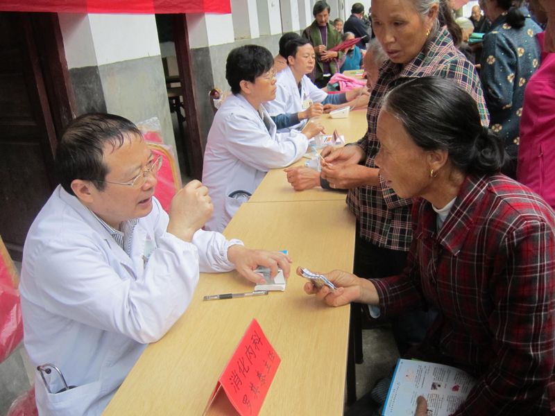 经过二个多小时的车程,医疗专家组冒雨来到绥远山村。在村委会办公楼前,几位医疗专家稍作准备,便换上白大褂,为闻讯而来的当地村民进行了诊疗,共接诊群众123人次,测血压90人次,测血糖56人次,免费发放价值近六千元药品,分发各类宣传材料200余份,受到当地村民的热烈欢迎。(机关二支部)