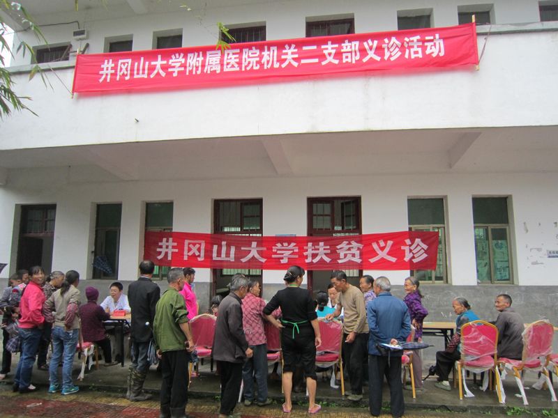 永新县龙源口镇绥远山村是井冈山大学挂点扶贫村,现也是井冈山大学附属医院精准医疗扶贫点。为深入推进“两学一做”学习教育,在前期详细调研和精准医疗扶贫的基础上,10月22日,附属医院机关二支部联合心血管内科、骨科、消化内科、内分泌科等专家到龙源口镇绥远山村开展送医送药义诊活动。院长曾常爱以普通党员身份参加此活动。