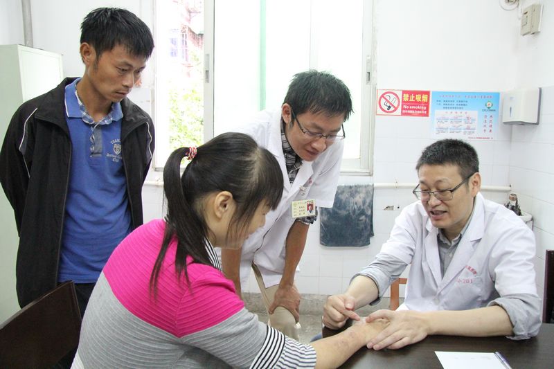 29日上午,十院皮肤病院皮肤病理科主任刘业强在皮肤科坐诊,慕名前来看病的患者是络绎不绝,很多患者都表示不用出远门,就能享受到上海十院专家的诊治,又是义诊,免费看病,觉得非常幸运。“自己本身是江西人,对江西怀有深厚的感情,能来老区为这边的群众看病觉得非常荣幸。”刘业强主任说,此次前来是先对皮肤科做一个了解,今后希望通过远程会诊、进修培训、搞不定期的基础教育学习班、提供科室建设的意见帮助附属医院皮肤科实现快速发展。