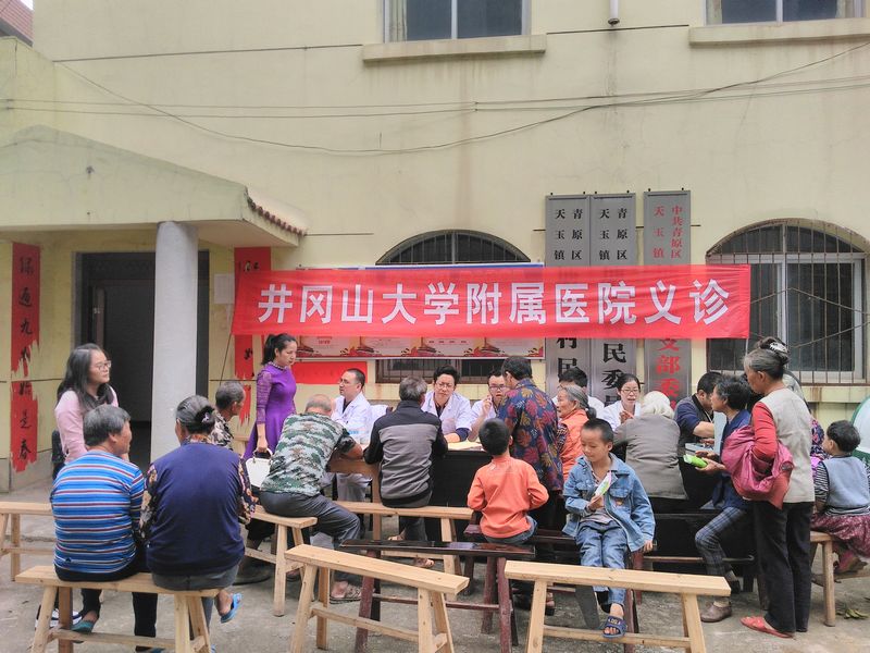 10月16日,井冈山大学附属医院外科二支部利用休息日到青原区天玉镇塘尾村委会开展爱心义诊活动,来自普外、脑外、疼痛、胸外、中医等科室10名医护人员参加了此次义诊。