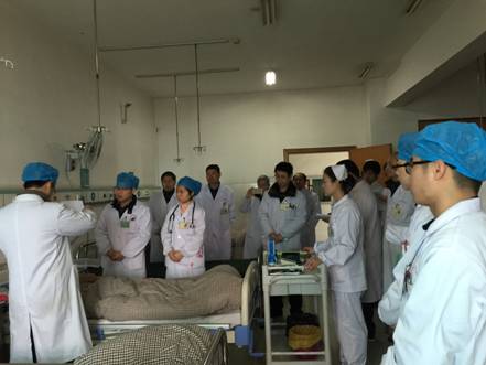 但愿世间人无病,何愁架上药生尘。为规范临床教学查房工作,培养临床医学实习生临床技能和自主学习能力,12月31日上午,临床医学院(附属医院)在神经内科进行了临床教学查房示范,院长曾常爱、党委书记肖游章、分管副院长邹亦平对此高度重视并亲临现场指导,参与人员有临床系副主任刘旭阳、方木水教授、神经内科主任邓施平及各教研室主任、主要课程负责人等。