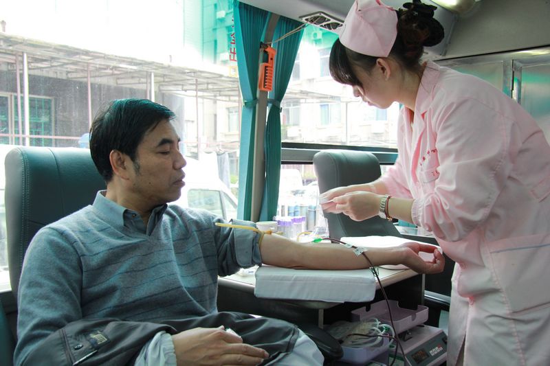上午8点,血液中心的采血车缓缓地驶进了医院后院,前来献血的职工接连不断,献血的工作进行得井然有序,有的在填写献血登记表,有的在测量血压、有的在进行血液检测、有的已经伸出胳膊正在献血,大家用热情、微笑传递着爱心。在献血队伍中,我们发现,其中有初次献血的献血新人、有平均每月献血一次的献血标兵、有年岁已高的主任、有刚踏上工作岗位的年轻姑娘、有带头垂范的院领导、有默默付出的普通职工、有独自前来的、也有夫妻搭档一起来的等等,他们满怀爱心和激情,积极参加公益事业,贡献自己的爱心。
