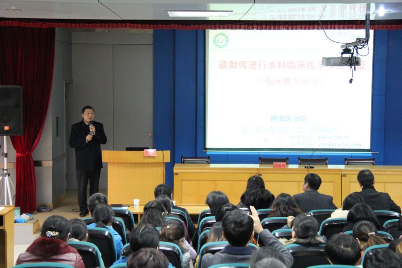 因三甲创评和临床医学专业认证需要,12月7日下午,我院特邀赣南医学院第一附属医院副院长叶军、内科教研室副主任周爱琴两位专家来院举办专题讲座,院领导、临床医技科室中层干部、全体教师、专业认证办公室及科教科全体成员参加,党委书记肖游章主持。