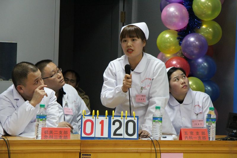 竞赛考核的内容为:三甲评审实施细则、应知应会手册、应急预案手册、医院制度汇编、评审专家现场访谈等知识内容。全院全体职工,以13个党支部为单位组成六个竞赛小组,每个竞赛小组从支部内选拔三名代表队员参赛,评委由综合管理组、医疗组、药事组、护理组、院感组一名专家组成,医务科科长颜程光担任总评委。比赛共分四轮,分别为必答题、抢答题、闯关题、风险题,依据答题情况累计分数,确定名次,每轮的比赛规则各异,其中要数闯关题和风险题最令人紧张刺激、变数最多,期间各参赛队伍势均力敌、你追我赶、激烈对抗、奋力拼杀,也将现场的气氛拉至高潮,最终第二竞赛小组,以堪称完美的表现力秒杀全场,征服了现场的评委及观众,以总分第一的成绩夺得团体一等奖。在比赛间隙,为了调动、活跃现场气氛,穿插了观众互动环节和文艺演出,现场观众热情参与,积极与主持人互动,回答问题,玩得不亦乐乎。