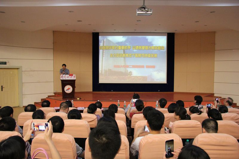 为促进我院三甲评审工作顺利开展,提高医院医疗、服务、管理质量。7月26日上午,我院特邀南昌大学第二附属医院院长程晓曙亲临井冈山大学数理大楼学术报告厅授课指导,程晓曙院长作了《以医院评审为有力抓手,以绩效管理为有效载体,全面促进新常态下医院可持续发展》的专题讲座。课程由院长曾常爱主持,全院职工参加。