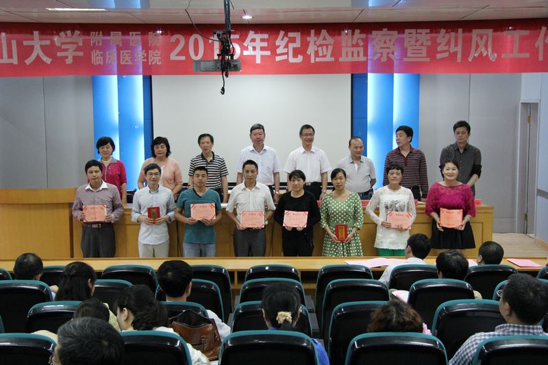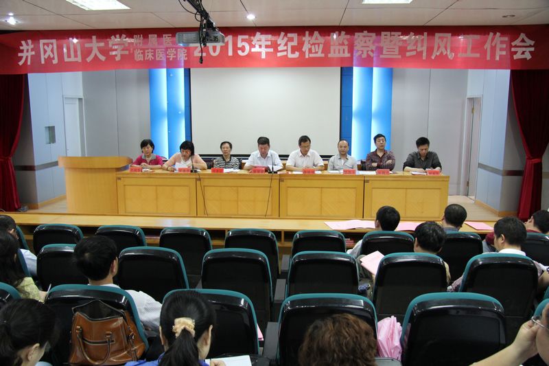 5月8日下午,临床医学院、附属医院召开了2015年纪检监察暨纠风工作会议,学习传达2015年全省卫生计生系统纪检监察暨纠风工作会议和学校纪检监察工作会议精神,总结2014年我院党风廉政建设和纠风工作,安排部署2015年党风廉政建设和纠风工作。院领导、各支部书记、全体中层干部、纪检监察室审计科全体人员参加了会议,会议由院长曾常爱主持。