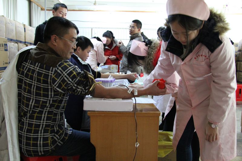 2月10日早上8点30分,我院门诊八楼住院部中心药房内已聚集一大批前来献血的职工,虽然天气寒冷,却丝毫不影响大家献血的热情。市血站中心的采血人员一到,大家就积极配合他们做好采血前的准备工作,填写献血登记表,有序地进行采血检验,验血合格者则排队等候参加献血。在献血的队伍中我们看到既有已在临床奋斗多年的老主任,也有刚参加工作不久的年轻医生及护士;既有曾多次献血的献血“标兵”,也有初次献血的献血“新兵”,有身强力壮的男同胞,也不乏娇小玲珑的女同志,大家都竭尽全力贡献自己的爱心,能献400ML绝不献200ML,在这种助人为乐、勇于奉献、极富社会责任感的精神感召下,之前不曾报名的同志也踊跃报名加入到献血的队伍中来,其中有个职工知道自己不能献血,但为了贡献自己的爱心携带家属前来献血,这一举动令在场所有的人为之动容。大家用微笑给彼此加油鼓劲,整个现场成了一片爱的海洋。活动进行到中午12点,最终有35名职工参加献血,其中32名职工符合献血要求,共献出健康血液1万余毫升。