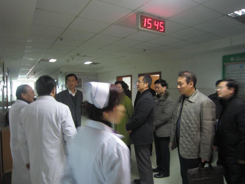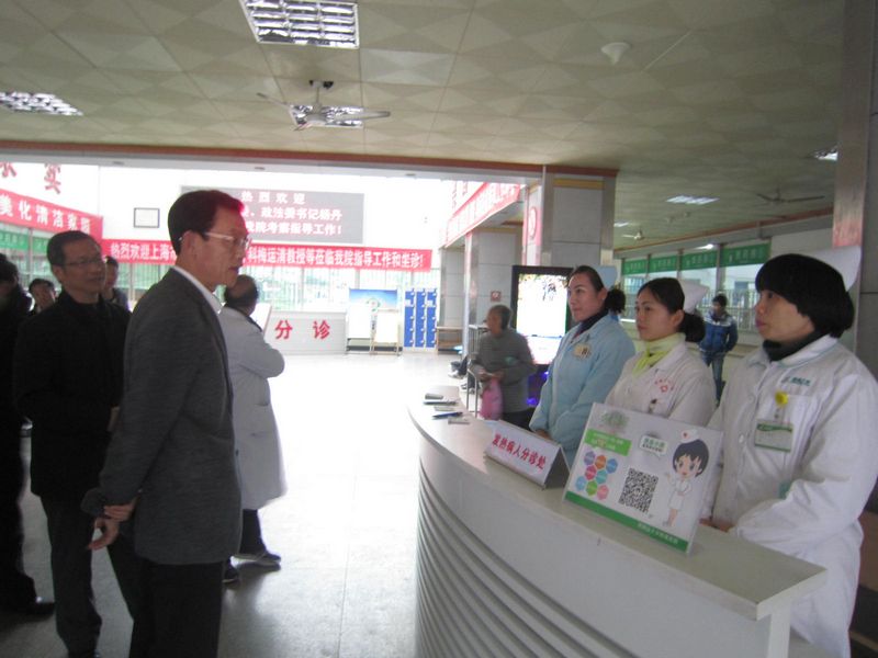 12月25日下午,市委常委、政法委书记杨丹同志在市卫计委、市司法局、市政法委综治办等部门和单位负责同志的陪同下来到附属医院,深入警务室、医疗纠纷办、胸心血管病区、血液肿瘤病区等,就“平安医院”创建活动开展情况进行考察、指导和调研。我院党委书记李裕福、副院长邹亦平、曾晓元、谭立宇等在陪同的行程中向杨丹书记一行汇报了相关工作,回答了有关问题。