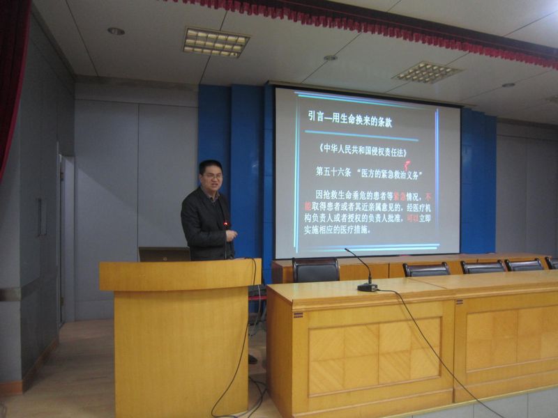 为了深化“等级医院评审”活动,认真学习《江西省医疗纠纷预防与处理条例》,我院拟11月份在全院开展医疗安全教育月活动,每周举行一次,时间定在每周五晚六点半到九点。11月7日,我院开展了本次活动的第一项,在全院开展关于如何防范医疗纠纷法律知识培训。院领导、各临床、医技、行政科室负责人及部分职工参加了此次培训,培训会在图书馆六楼学术报告厅举行,由张小兵律师、周菊生主任主讲,医务科副科长胡大沩主持。