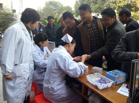 2014年11月14日,我院内分泌科全体医务人员在院内外开展了一系列活动:一早刘蓉主任带领着医生和护士在住院部一楼门口为过往的群众,开展免费测血糖、测血压和发放全套糖尿病知识宣传手册,为100多位群众测血糖和血压,发放健康手册200余份,并和血糖高危人群建立了联系方式。下午内分泌科主任医师罗红娥来到习溪桥书街社区为社区内40多位居民开展了一堂生动的《健康饮食与糖尿病》专题讲座,受到大家的好评。(社服科-陈苏桂)