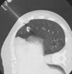 经皮肺穿刺活检为微创诊断肺部疾病的一种方法。许多纤维支气管镜未能取得病理诊断的患者在我科利用经皮肺穿刺活检术得到确诊,弥补了纤支镜的不足,为患者的进一步科学合理治疗提供了支撑。其适应证为:1、肺内结节、纵隔肿块;2、胸壁或胸膜的肿块;3、局灶或多发的肺内突变,感染菌种不明;4、不能手术,但须确定病理类型的肺内恶性病变者。