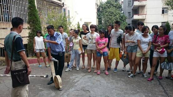 演练活动上,消防科周长生科长首先给大家详细讲解了发生火灾时可能遇到的紧急情况及处置方式,随后他介绍了干粉灭火器、泡沫灭火器、二氧化碳灭火器以及清水灭火器的操作方法。同时,此次演练还在指定地点设置了着火点,周科长现场进行了操作示范,并指导10余名同学亲身体验灭火过程。最后大家来到学生宿舍楼,周科长现场传授了消防水带的连接与使用方法。