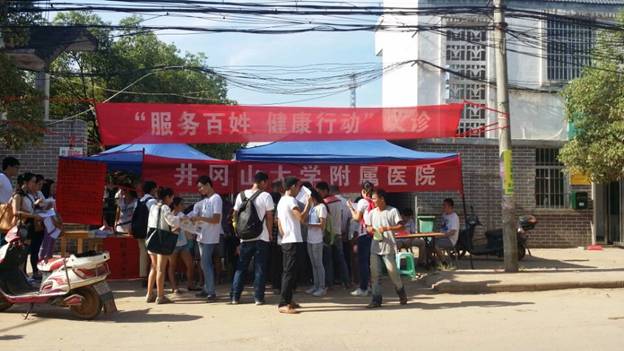 为进一步深入开展党的群众路线教育实践活动,加强健康医学知识宣传普及,树立卫生计生系统为民务实清廉形象,根据国家、省卫计委的统一部署,9月18日上午,在兴桥镇主要街道上,井冈山大学附属医院、井冈山大学医务社会工作专业共数十位师生为兴桥镇居民提供免费义诊服务。活动主要包括:免费体检、发放预防医疗诈骗宣传单、提供疾病救困咨询与登记和回收过期药品等。活动现场,吸引了大量居民前来咨询,医护人员对患者进行了细心检查,并现场测试血压,对患者提出的问题进行专业解答。服务结束,免费体检达160多人次,发放预防医务诈骗宣传单120份,接受疾病救困咨询并登记救困需求24人,回收过期药品26件。
