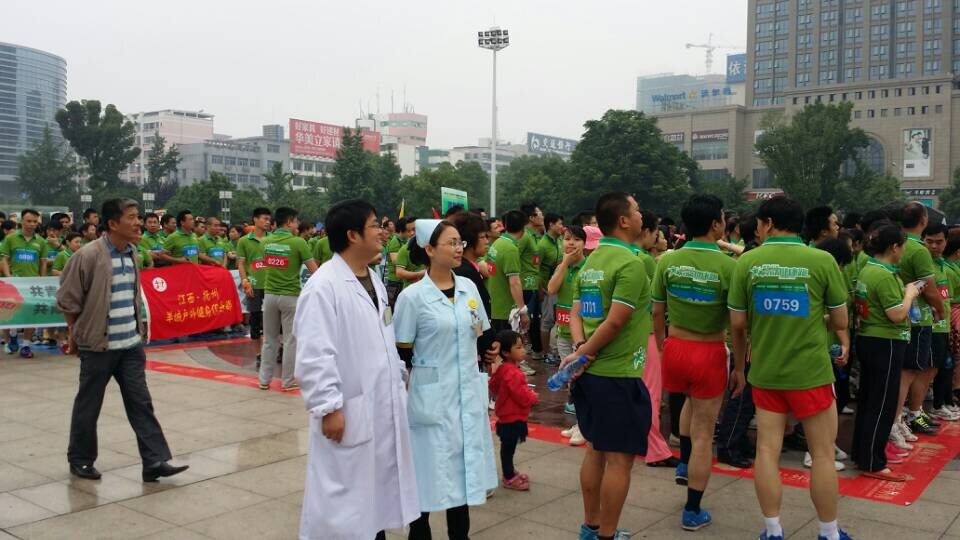 5月18日上午,共青团吉安市委和共青团吉州区委共同举办了一场以“氧活健康跑,为健康加油”为主题的健康跑活动,吸引了来自全市各机关企事业单位和社会各界群众1300余人参加。此次健康跑活动由人民广场出发,途经广场花街、阳明东路、吉安大桥、湖滨东路、文天祥北路,最后到达终点滨江大道,全程约4公里。 此次健康跑参加人数多,路程长,为了积极应对随时可能发生的健康突发事件,我院医务人员在前期做了大量的准备工作,配备了充足的急救必需品,确保了健康跑活动的医疗救治保障工作顺利进行。
