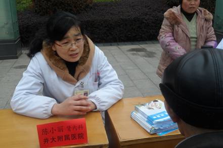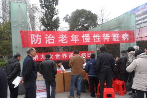 2014年3月13日是第九届世界肾脏日,今年的主题是“防治老年慢性肾病”。当天,在肾内科陈小丽副主任的组织下,我院联合市区其它医院肾脏病专家在吉安市人民广场开展“防治老年慢性肾病”主题义诊活动。义诊现场,专家们针对老年肾病发病、症状、预防、治疗等知识提供了免费咨询和诊疗服务,还发放了老年肾病相关健康知识宣传册及健康处方,受到了市民尤其是老年朋友们的普遍欢迎。