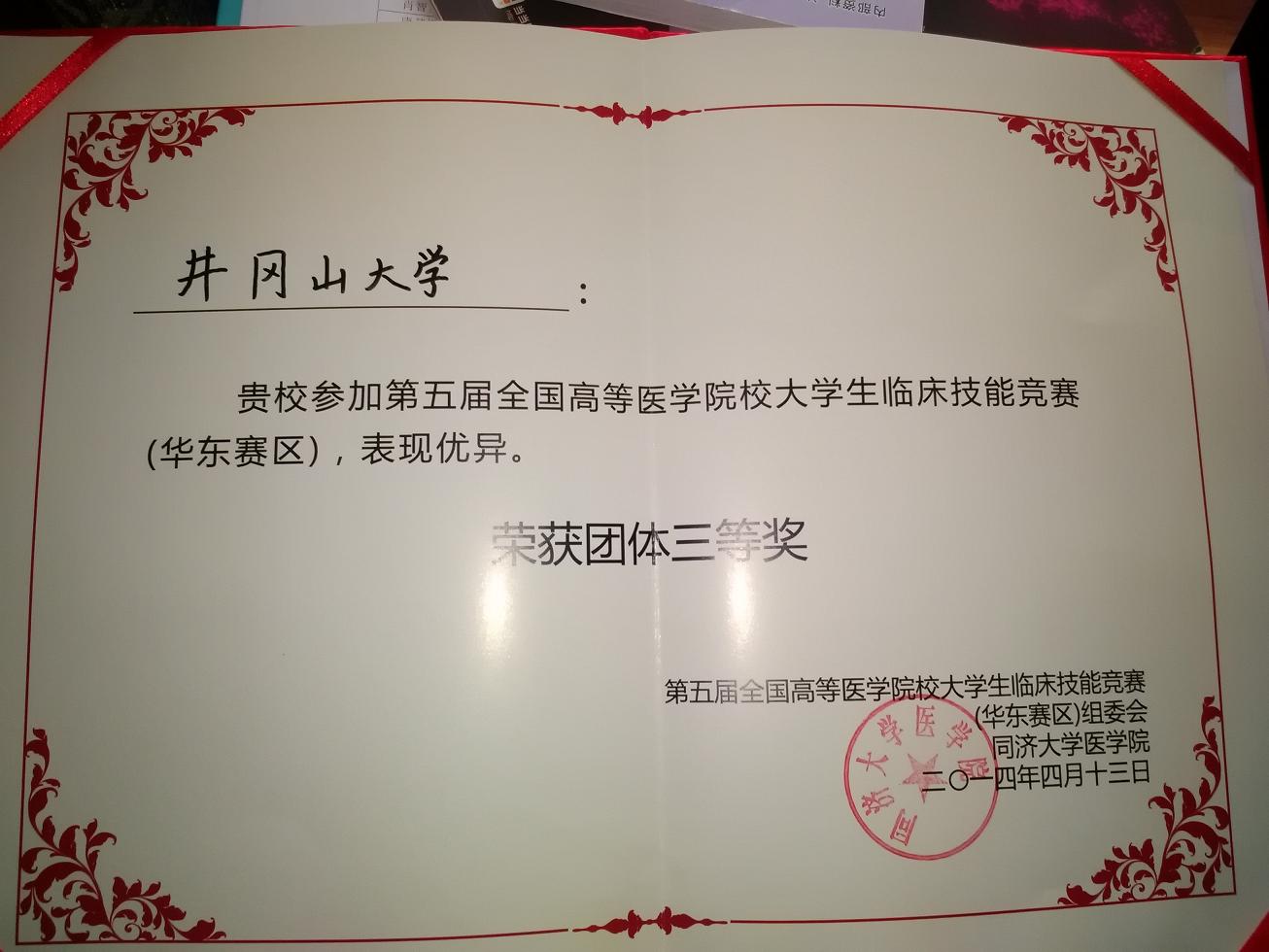 4月12日,第五届全国高等医学院校大学生临床技能竞赛(华东赛区)在同济大学开赛,33所医学院校36支代表队的144名学生参加比赛。经过激烈的角逐,井冈山大学代表队荣获第五届全国高等医学院校大学生临床技能竞赛(华东赛区)三等奖,展示了选手们过硬的临床技能水平和良好的综合素质。