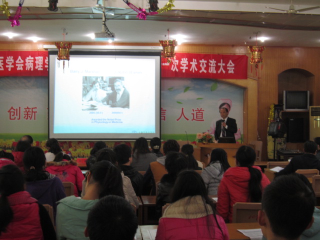 曾常爱院长在致开幕词时说,病理学是临床医学的重点学科,病理质量的好坏、水平的高低,直接影响着医疗质量和医疗安全,也代表着一个医院的整体服务水平。他表示,附属医院一贯重视和支持病理学的发展,积极为我市医学事业发展和人民健康事业做出应有的贡献。今天市医学会病理学专业委员会的成立,标志着我市病理事业进入一个新的发展阶段,有利于推进附属医院病理学科的建设和发展,也有利于进一步提高全市病理学专业医疗、教学和科研水平。