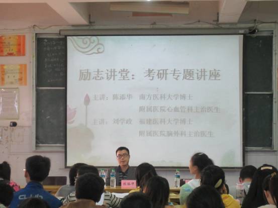 为了使同学们了解考研最新动态,更好地备战考研,9月28日下午,临床医学院励志考研专题讲座在231教室举行。原井冈山医学高等专科学校96届毕业生、现井冈山大学临床医学院教师陈添华博士应邀为同学们作了考研专题讲座。院领导王政华、学生科教师和09、10级100多位学生聆听了讲座。