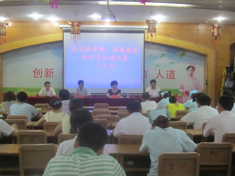 为加强我院新闻宣传队伍建设,提高新闻报道水平,推动临床医学院、附属医院新闻宣传工作再上新台阶,6月28日下午,我院新闻宣传通讯员工作会议在门诊楼八楼会议室召开,党委书记李裕福、副书记王政华出席会议并分别讲话,办公室有关同志、70多名新闻宣传通讯员参加了会议。会议由办公室主任郭欢主持。
