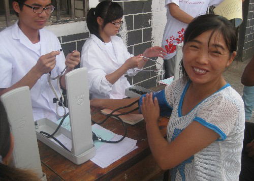 7月7日上午,服务团奔赴吉水县醪桥镇开展医疗卫生社会实践活动。为村民们做健康检查,解答他们提出的各种问题,指导他们的日常饮食、保健;开展问卷调查活动,分发宣传单,进行健康知识及新农合医疗改革政策的普及宣传。学院党委副书记王政华专程看望了参加活动的我院师生,并对大家的辛勤工作表示慰问。