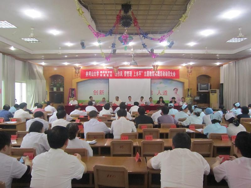 5月16日下午,井冈山大学临床医学院、附属医院召开了“转作风、促管理、上水平”主题教育实践活动动员大会,标志着为期一个半月的主题教育实践活动正式拉开序幕。党委书记李裕福、院长曾常爱分别讲话,党委副书记罗美华宣读了活动实施方案,党委副书记王政华传达学校“转作风、促管理、上水平”主题教育实践活动动员大会精神,院领导及中层干部110余人参加了会议。动员大会由副院长司小刚主持。