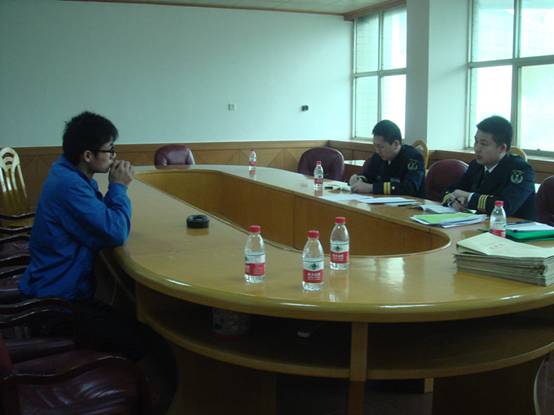 随后,南海舰队李主任和周干事在三楼会议室对我院毕业生进行了“两对一”的面试以及资格审查。