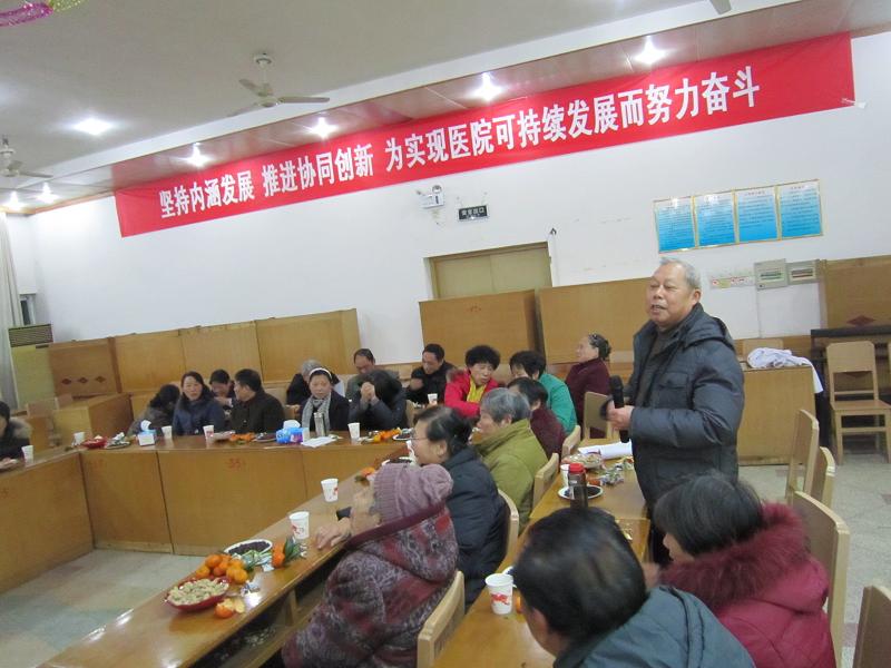 会上,曾常爱院长提前向各位退休教职工致以新春问候,他肯定了退休教职工对医院发展所作的贡献,感谢他们对医院改革发展稳定工作的支持。曾常爱院长重点就2012年医院工作开展情况和2013年工作要点向各位退休教职工作了通报。