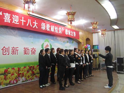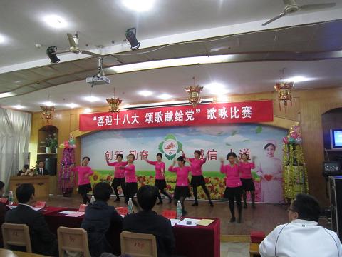 为了迎接党的十八大顺利召开,进一步激发全院职工的爱党、爱国情怀,11月7日下午,我院在八楼会议室举办了“颂歌献给党,喜迎十八大”歌咏比赛。院长曾常爱、党委副书记罗美华、王政华等院领导及全院教职工共150多人观看比赛。