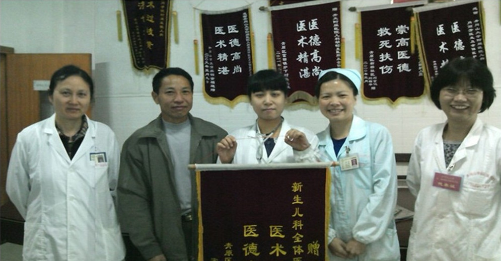 入院后立即请示郭艳萍主任及肖丽芳上级医师,在全科医务人员配合下给予吸氧保暖,营养支持,预防感染、出血、窒息等积极抢救措施,由于早产及体重太轻,面临着呼吸功能不全、严重感染、营养不良、喂养困难、高胆红素血症等难关,但我科医务人员全力以赴,主任及上级医师每日坚持查房至少2次,经管医师随叫随到,护士亲自帮患儿换尿片、喂养、臀部清洗等。期间家属多次要感谢罗智英医师,但罗医师本着“医者仁心”的从医原则,婉言拒绝。经过全科医务人员的精心治疗和周到护理,患儿顺利度过危险期,体重较前有所增长,吮奶正常。罗智英医师交代家属出院后保持婴儿室卫生、通风,继续预防感染,二个月内减少探视,加强喂养,有情况随诊。患者家属对儿科的诊治护理非常满意,并送来感谢锦旗一面。(儿科 戴贞照)