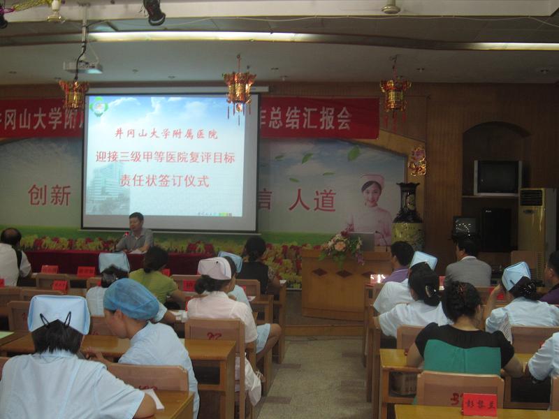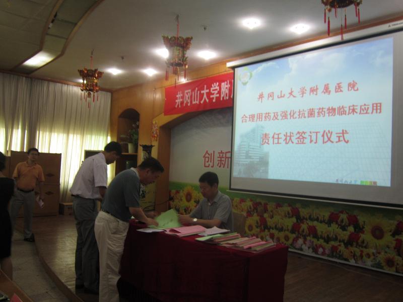 会上,曾常爱院长与各科室负责人签订了《迎接三级甲等医院复评目标责任状》和《合理用药及强化抗菌药物临床应用责任状》。