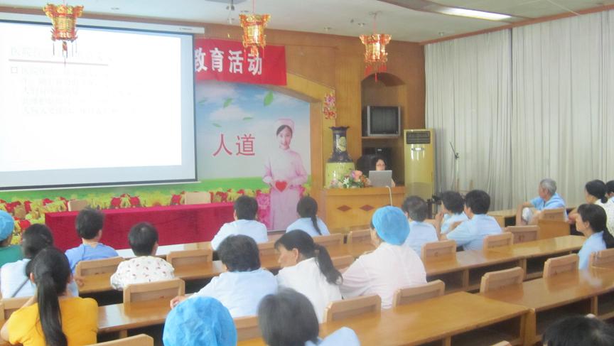 医院保洁的好坏不但影响着医院的形象,而且与院感控制紧密相关。针对我院保洁员流动性大、工作范围广、文化参差不齐、未经过专业卫生知识培训、缺乏预防医院感染知识、个人防护意识淡薄等现状,6月21日下午,院感科胡春华科长对全院50余名保洁员进行了一次系统的医院感染知识培训。