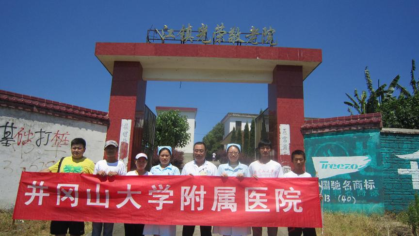 7月2日上午,我院医护人员随同医学院、护理学院、外国语学院组成的暑期社会实践志愿者服务团一行到吉安县固江镇光荣敬老院,探望了30余名孤寡老人,为他们送去健康和温暖。