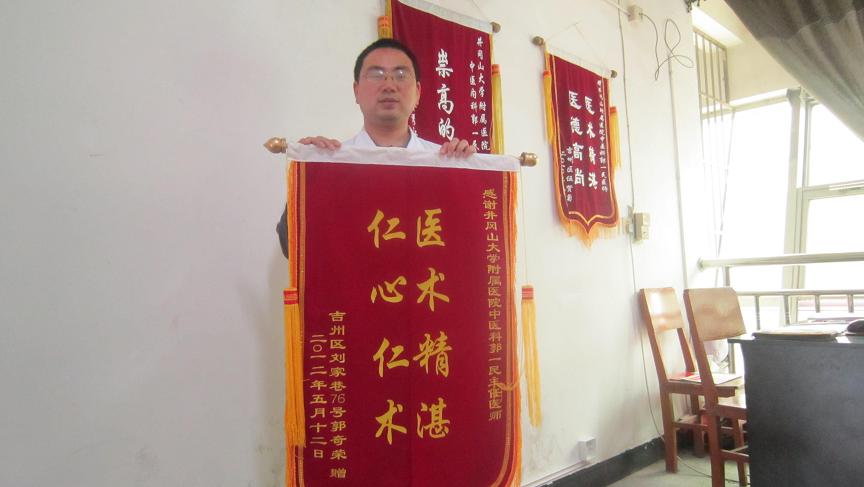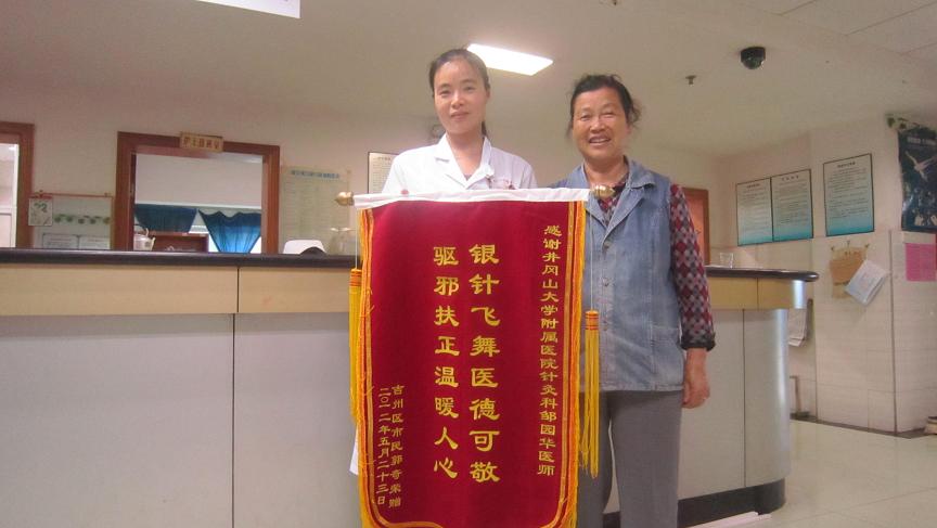 5月24日上午,患者郭奇荣送来感谢锦旗。郭奇荣曾面瘫10余天,进食困难;又患有中风,行走不便。在我院中医科郭一民副主任医师和中医康复科邹园华医师的精心治疗下,患者以上病状得到了明显改善。面瘫已治愈,进食顺利,行走利索。