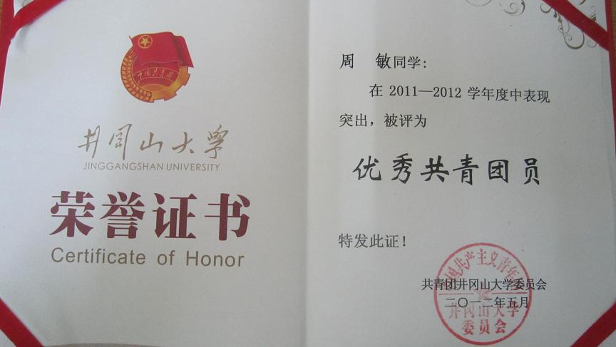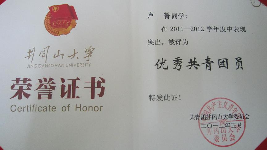 5月3日下午,井冈山大学隆重举行纪念中国共青团成立90周年暨表彰大会,全校644名优秀团员受到大会表彰。在表彰大会上,我院周敏、卢菁、曾翰霖、罗华威四位同志获学校“优秀共青团员”称号。