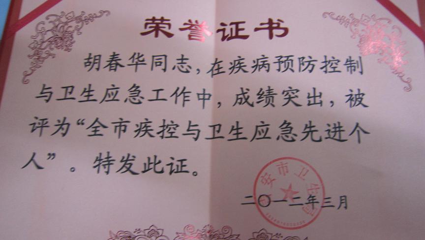 我院医务科周军科长和预防保健科、院感科胡春华科长在吉安市疾病控制与卫生应急工作中表现突出,被评为“全市疾控与卫生应急先进个人”。