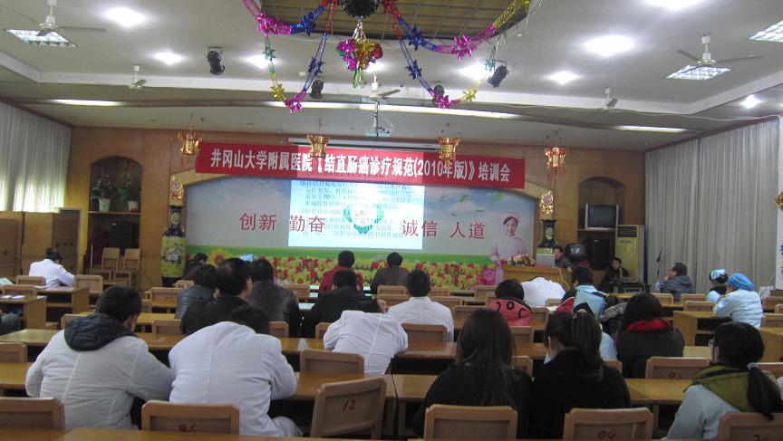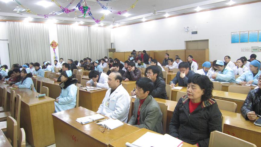 为了促进我院结直肠癌诊疗水平的不断提高,提高对恶性肿瘤的诊治水平和治疗技术,以放射治疗、手术治疗、化疗、传统医学治疗、康复治疗等多学科协作综合治疗,为患者打造一个完善的规范化治疗体系,提高肿瘤患者生存时间和生活质量。3月15日下午,我院在八楼会议室举办了《结直肠癌诊疗规范(2010年版)》培训会。肿瘤科方木水主任医师和普外科丁小兵主治医师结合临床经验,分别从《结直肠癌诊疗规范的学习报告》、《结直肠癌诊疗规范解读体会》进行了精彩讲解,使听讲的200多名医护人员加深了对《结直肠癌诊疗规范》的理解,大家受益匪浅。