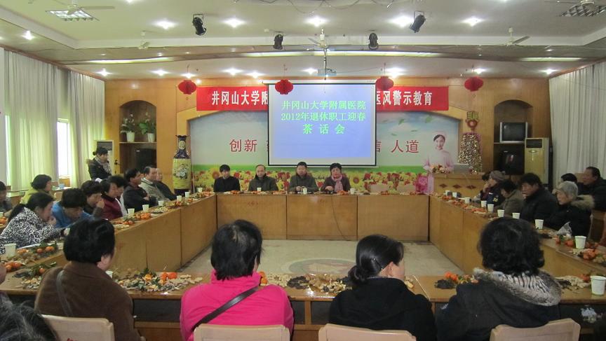 1月4日下午,我院在八楼会议室举行2012年退休职工迎春茶话会,院长曾常爱总结了2011年医院工作情况和汇报了2012年工作计划,院领导、退休职工近70人参加茶话会。会议由党委副书记罗美华主持。
