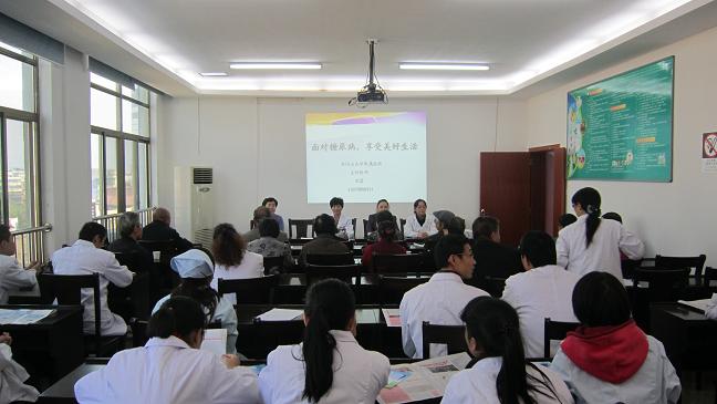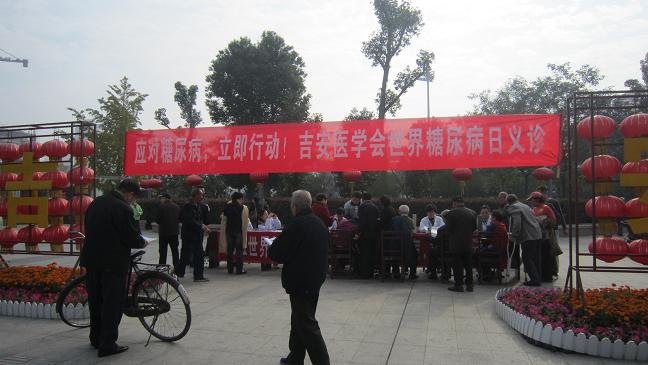 11月14日,在吉安市医学会的统一组织下,我院派出内分泌科刘蓉主任、社区卫生服务科陈苏桂科长,到吉安市人民广场开展了“应对糖尿病,立即行动”义诊活动,此次活动紧扣今年的世界糖尿病日主题。活动现场气氛热烈,广大群众积极参与,近200余名糖尿病患者及各类慢性病患者前来就诊及咨询。我院同时为患者提供了免费血糖监测及血压监测的服务。稍早,我院还派出刘蓉主任到白塘街道社区卫生服务中心,向社区100多名糖尿病患者作了题为《面对糖尿病,享受美好生活》的讲座,并赠送了药品三大箱,发放了健康知识宣传资料210余份,受到患者和白塘街道社区卫生服务中心领导的一致欢迎。
