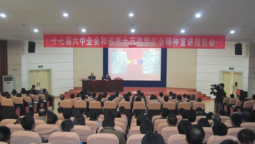 郭杰忠教授分别从充分认识党的十七届六中全会和省第十三次党代会的重大意义、准确把握十七届六中全会的主要精神、准确把握省第十三次党代会的主要精神、认真贯彻落实十七届六中全会和省第十三次党代会精神,为建设富裕和谐秀美江西而努力奋斗等四个方面进行了深入阐述,并联系高校工作实际,从全面提高高等教育质量,必须大力推进文化传承创新方面,进一步分析了高校肩负的重要责任和努力的方向。他认为,高等教育是优秀文化传承的重要载体和思想文化创新的重要源泉,高校要积极发挥文化育人作用,加强社会主义核心价值体系建设,加强先进文化建设,努力提高文化软实力,促进国际文化交流。