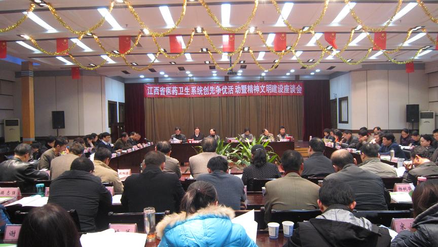 12月13—14日,江西省医药卫生系统创先争优活动暨精神文明建设座谈会在宜春召开,会议学习了卫生部创先争优活动第五次座谈会等相关会议精神,表彰了“基层党建工作和创先争优活动经验做法征集活动”,总结交流了2011年创先争优活动和精神文明建设经验做法。
