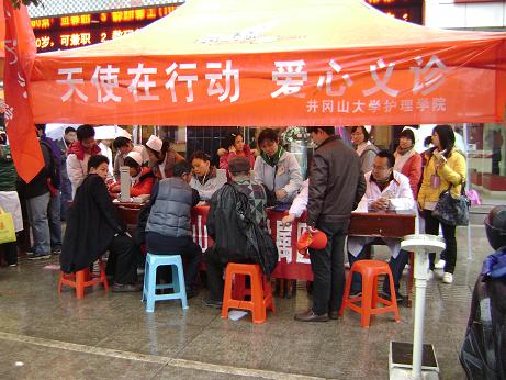 3月5日是传统的学雷锋活动纪念日,井冈山大学附属医院团委响应团市委号召,积极地在阳明西路开展义诊活动。我院医护人员在雷锋精神的感召下,顶着大雨,冒着寒风,热情高涨地开展学雷锋活动。测血压、健康宣教、查看口腔及眼科疾病……,医护人员热情细致的服务深深打动了每一个过路的行人,一句句“谢谢”是发自内心的感激。活动后,大家纷纷表示学习雷锋要从自己做起,让雷锋精神永传扬。(护理部 赵晋英)