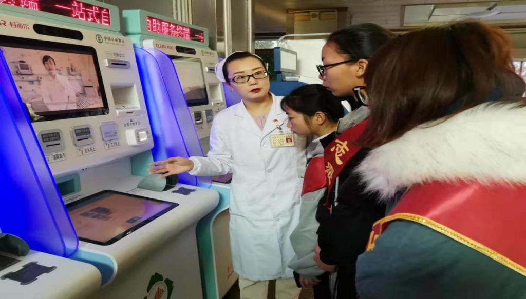 活动开始前,井冈山大学附属医院门诊部王红艳护士长为志愿者们进行培训,详细讲解医院整体布局、志愿服务中的注意事项、服务内容及银医自助机的使用流程等。