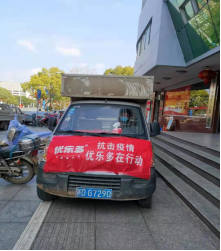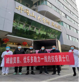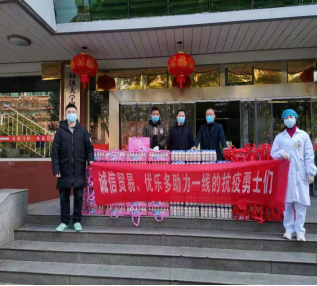 当天上午,一辆贴着“抗击疫情 优乐多在行动”标语的货载车载着这份“沉甸甸”的爱心出发。该贸易公司的总经理习林根同志亲临现场将物资送入我院,以实际行动支持疫情防控。在这样严峻的疫情面前,该场景尤为暖动人心。