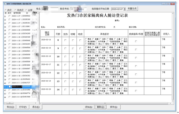 我院实现了网上填写“发热门诊随访”功能,门诊部可随时调取我院发热门诊患者信息,并自动生成随访表格,进一步跟踪患者的现状。
