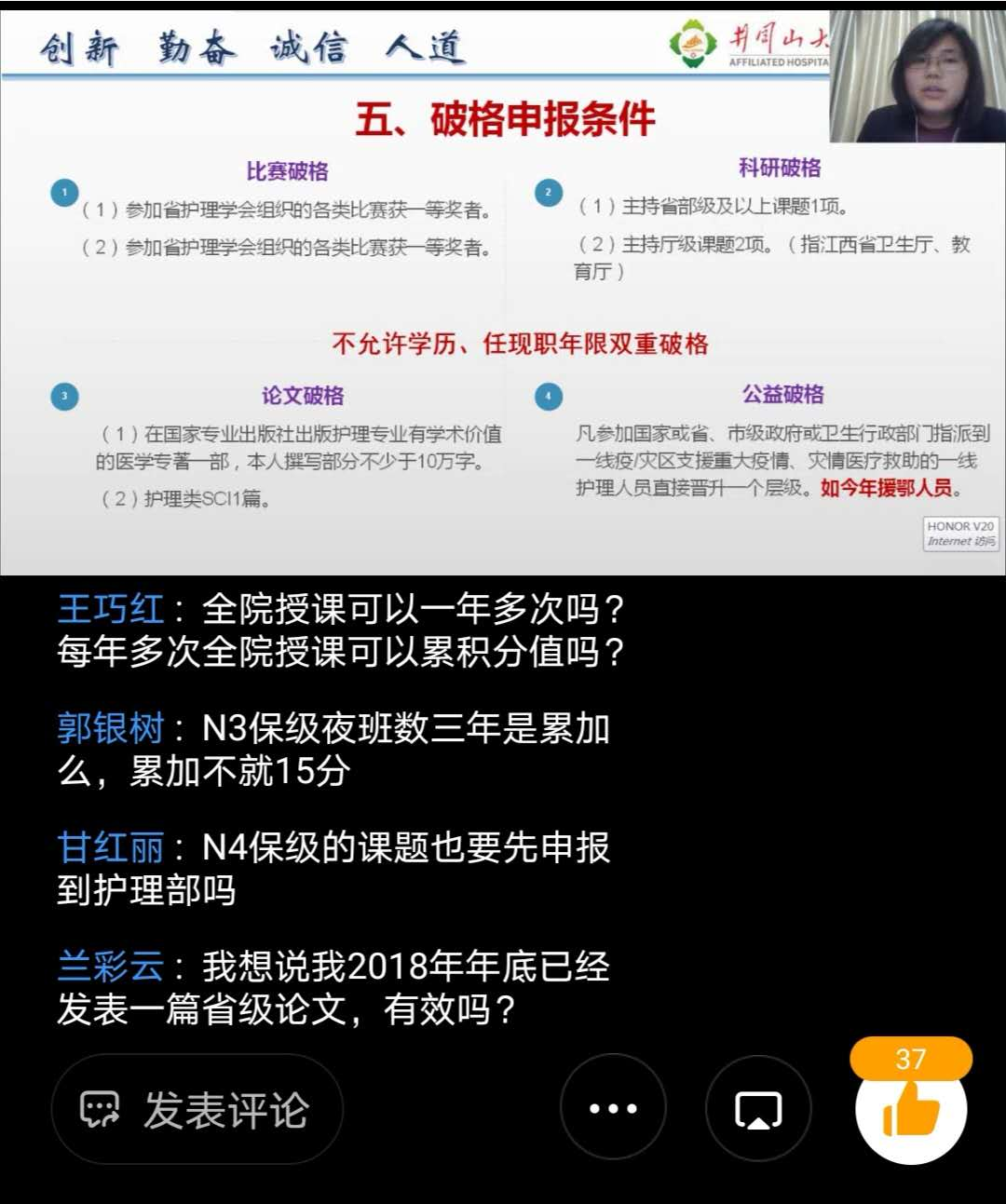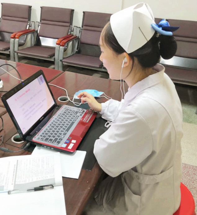 本次线上理论培训依托钉钉群直播进行,护士在预定时间内进入直播群,通过手机端实现在线观看,可与授课老师进行互动,线上提问,线上解答。未能及时观看直播或需要巩固学习的人员可在课后观看直播回放,工作学习两不耽误。