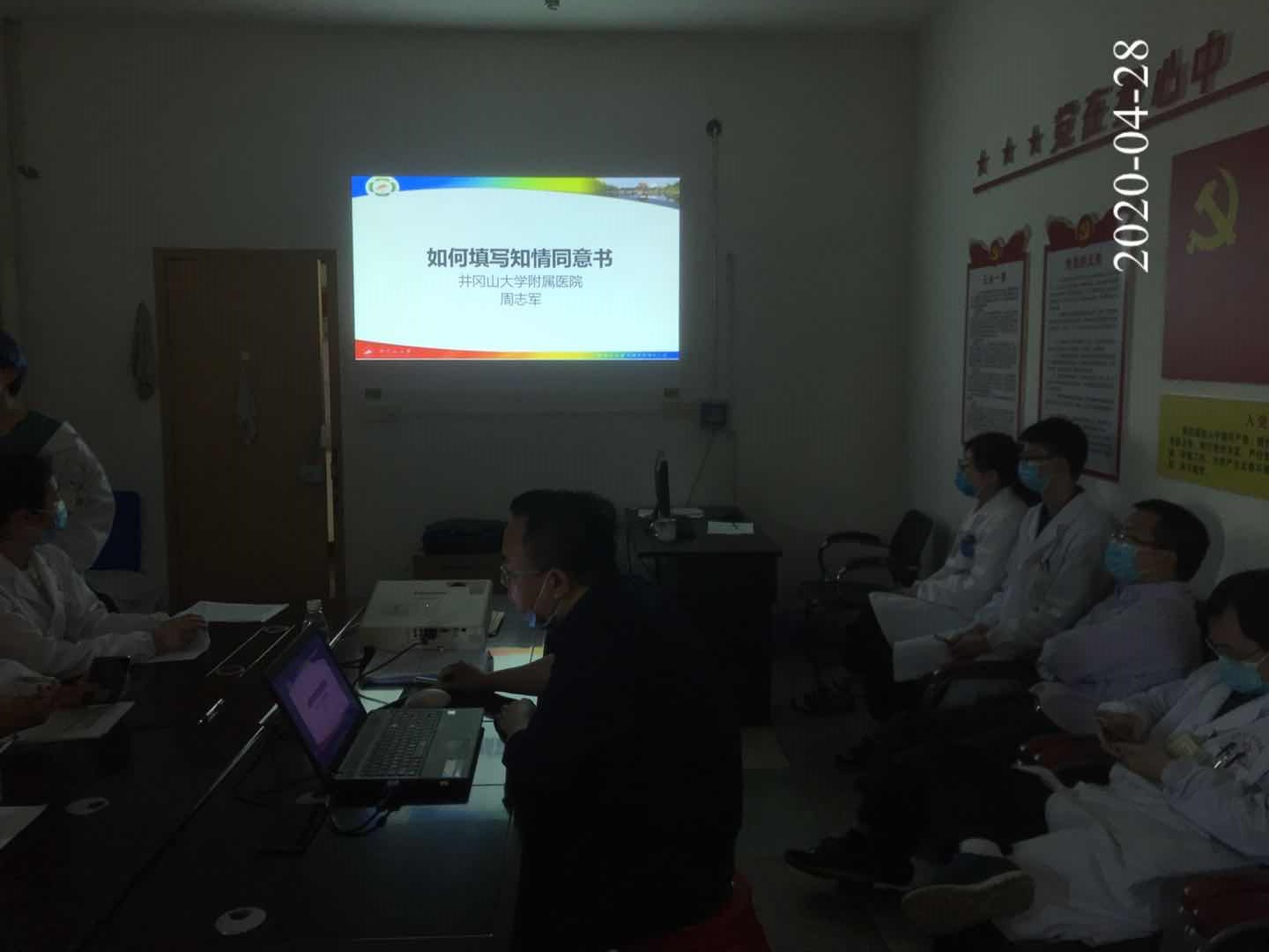 为进一步规范病历书写,促进医院医疗质量稳步提升,医务科分别于4月28日和4月29日下午在医院门诊六楼会议室开展知情同意专项培训并现场考核。培训由医务科副科长周志军主讲,全院中级及以下临床医师共计100余人参加培训。