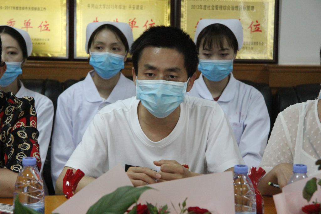 会上,举行了简单的献花及赠送纪念品的仪式,之后,7名援鄂医疗队员依次发言,畅谈了自身在武汉奋战的日日夜夜,分享了自身在武汉的所见、所闻、所感,讲述了在武汉发生的抗疫故事,对校领导及院领导在抗疫期间及平安归来后的支持与关心表示感谢,表示将满怀热情地投入到今后的工作中,继续为医疗卫生事业及医院事业做贡献。