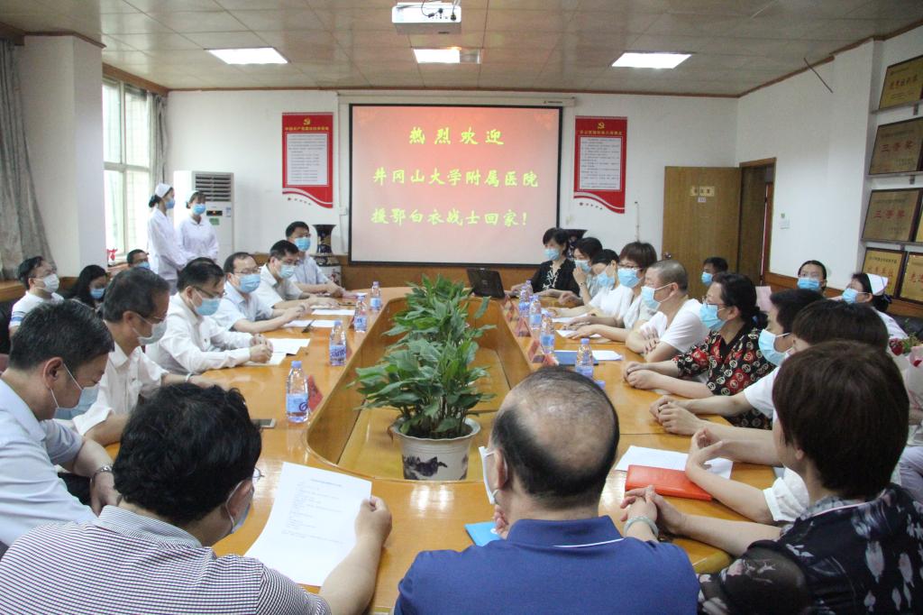 校长曾建平用了四句话来勉励大家,一、一次疫情就是一次人生大考;二、一次突发事件就是一次突击考验;三、一次重要事件就是一次重要的锻炼;四、一次鲜花掌声就是一次加油站。他也希望我院党委今后能够对援鄂人员给予关心与照顾,对他们的身心要进行抚慰,使他们的工作、生活能够更幸福,更有获得感。