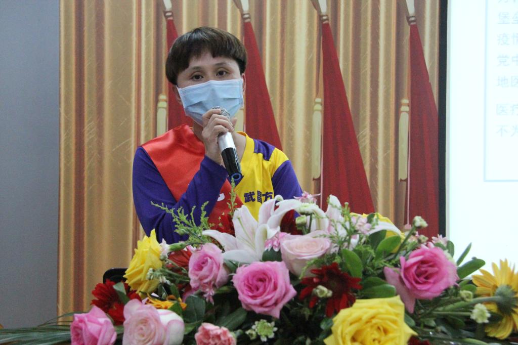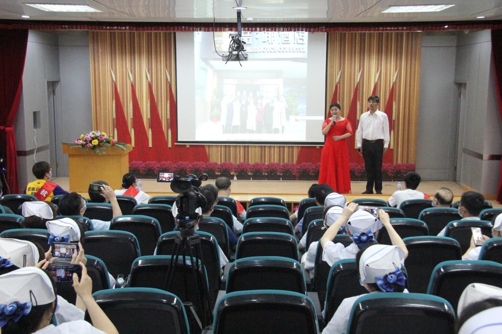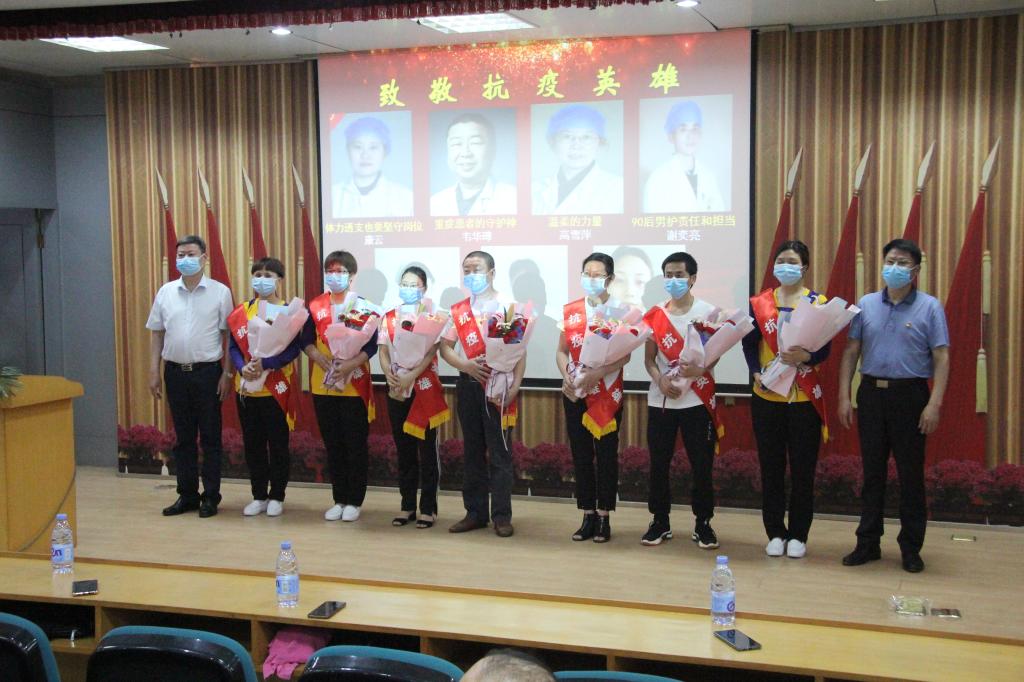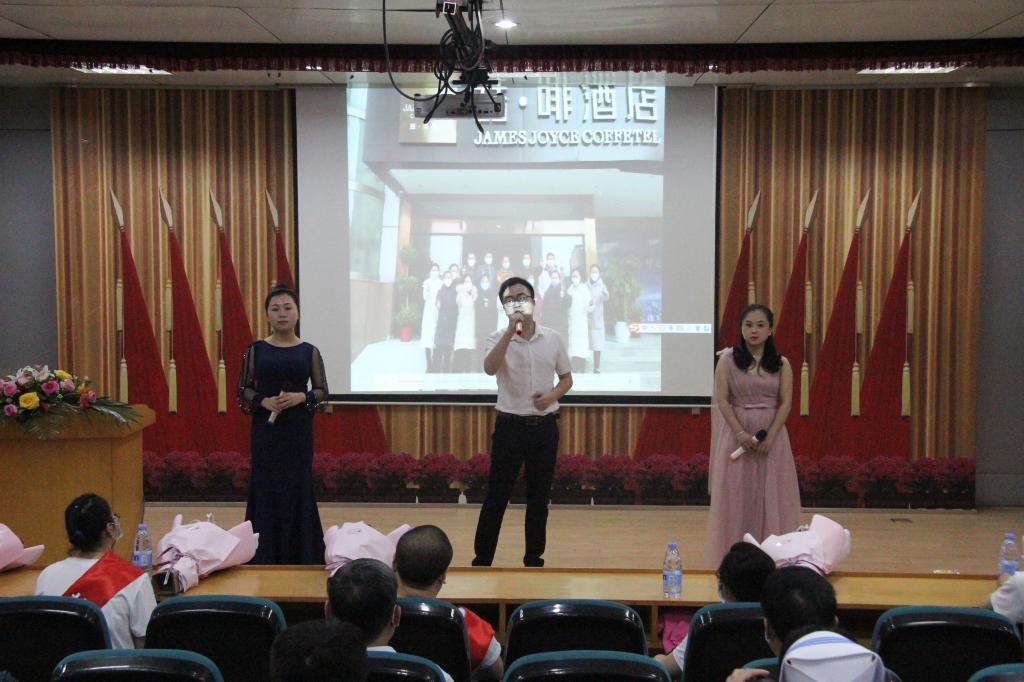 在《为了谁》(抗疫版)歌声中开启会议。会上,院领导向7名援鄂抗疫英雄及全省杰出护理工作者、吉安市优秀护理团队奖和吉安市优秀护士获奖者献花。
