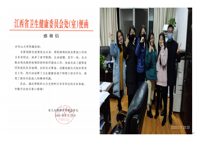 近日,江西省卫健委向我院发来信函,对我院药剂科借调至江西省卫健委的王非非同志进行通报表扬。